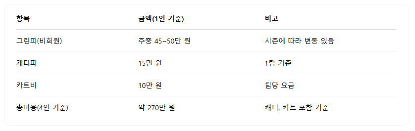 - 비용은 다소 높지만, 그만큼의 품질과 만족도를 제공하는 가심비 중심의 골프장